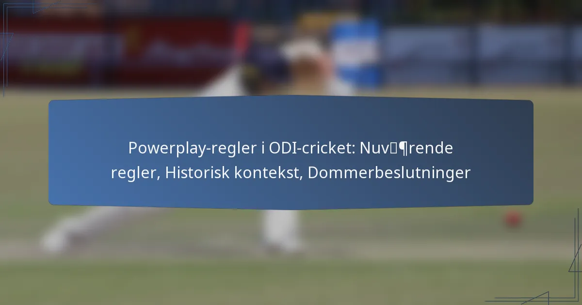 Powerplays i ODI cricket er bestemte overs, hvor specifikke feltbegrænsninger gælder, hvilket påvirker spillets strategi og flow. I øjeblikket er der tre Powerplay-faser, hver med distinkte regler, der former, hvordan holdene tilgår batting og bowling.